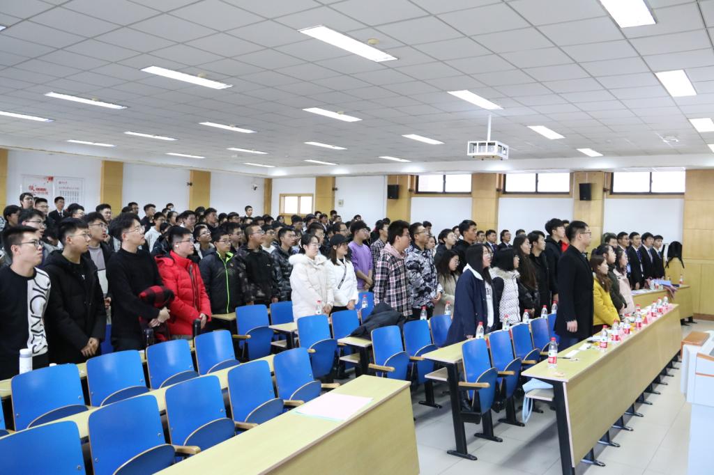 主持人宣布答辩会开始,答辩会第一项全体起立,奏唱中国共青团团歌, 第二项由主持人宣读本次答辩会评分细则及注意事项,本次答辩会全程遵循公平公开透明原则,使每个团支部能得到应有的评分,班级答辩顺序由提前抽签决定。