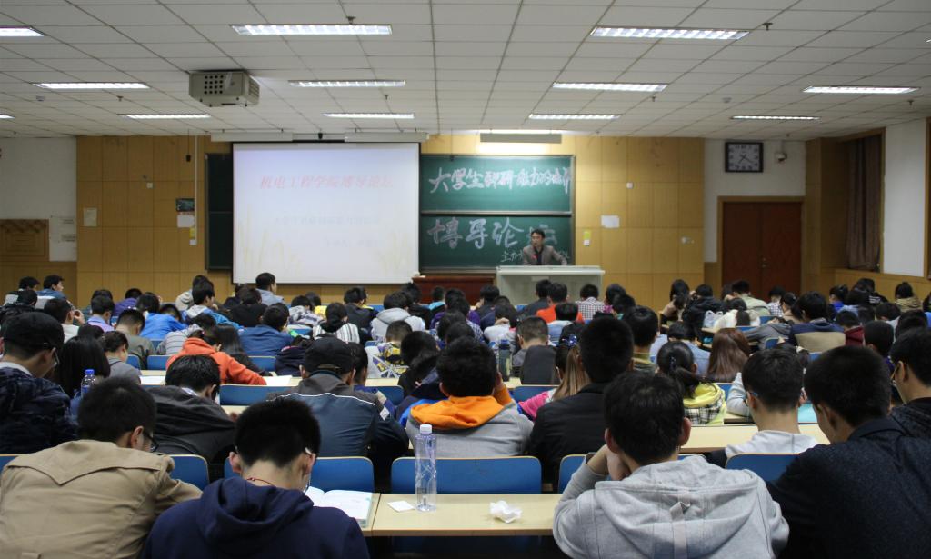 晚7时许,在同学们热烈的掌声中,尹建平教授登上讲台,开始此次博导论坛会的演讲。他首先提出学生要积极参加各种科研创新的比赛项目,并且详细地介绍这几个项目。在谈到数学建模大赛时,他仔细的为同学们讲述了数学建模的参赛条件和我校在这个比赛项目中取得的优异的成绩,并详细的解答了一位同学提出的关于数学建模方面的问题。随后,他又仔细介绍了电子设计大赛的一下事项以及近几年比赛的变化和我校在此项目上取得的成绩。接下来,尹教授和同学们的通过互问互答的形式使同学们对于自己专业的问题有了更具体的了解。在师生其乐融融的氛围中,时间不知不觉地过去了,论坛会也接近了尾声。在同学们的鼓掌声中,此次论坛会宣布圆满结束。