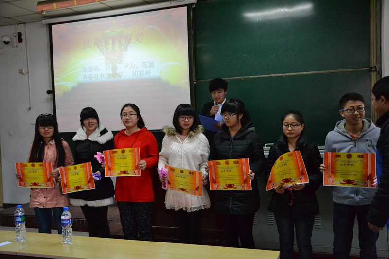 大会伊始,同学们首先观看了一段视频,大家了解到了在过去五周家教活动中的点点滴滴,感受到了家教成员们对义务家教的热爱和奉献。然后,工作人员为在此次义务家教活动中表现优秀的家教成员颁发了奖状,获得一等奖的是来自研究生院的陈红佳学姐,获得二等奖的有杜宏保、刘鑫宇、刘燕、王xue莲、赵树娜同学,获得三等奖的有张惠杨、赵鑫、尹为、齐春红、唐晨萍、范颖、胡彩叶同学。接着,三位获奖代表进行了发言,通过他们的言语,同学们感受到的是一颗炽热的爱心,是一种无私奉献的精神。大会的最后,青志队队长李扬学姐做了总结性发言,她号召大家向优秀家教学习,传递爱心,传播文明。