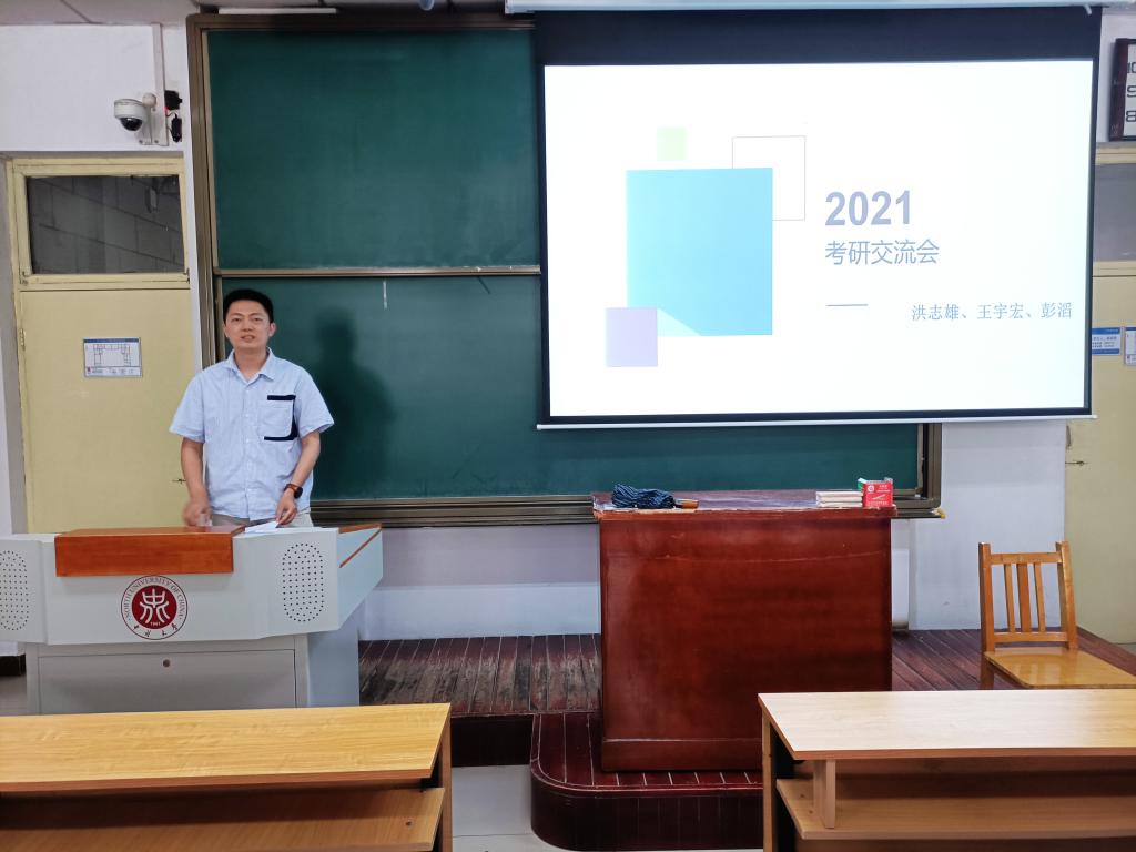 交流会上,王宇宏同志就跨专业、院校选择、找工作等方面分享了自己的经验,他鼓励大家认清自己,正确定位,勇敢去追求自己想要的目标;洪志雄同志向大家介绍了考研的大致流程,讲了备考过程中可能遇到的问题和应该注意的事项;彭滔同志结合自己工作后再考研的经历,从考研心态、日常作息等方面分享了自己的经验,他希望大家注重心态调节,注意学习方法。随后,在提问环节中,三位同志对大家提问的问题作出了详细的解答,并提出了针对性建议。