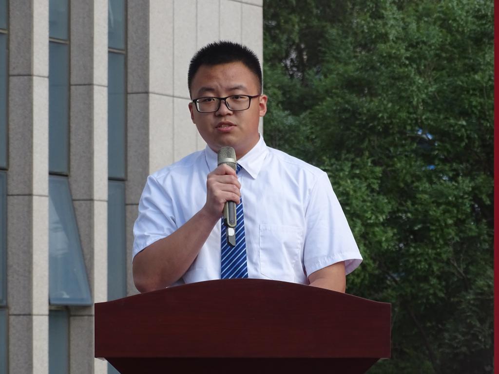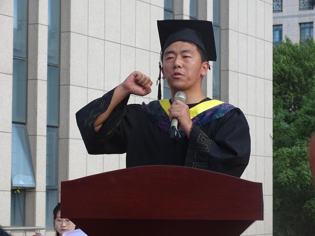 毕业生郭一梁带领全体毕业生庄严宣誓。
