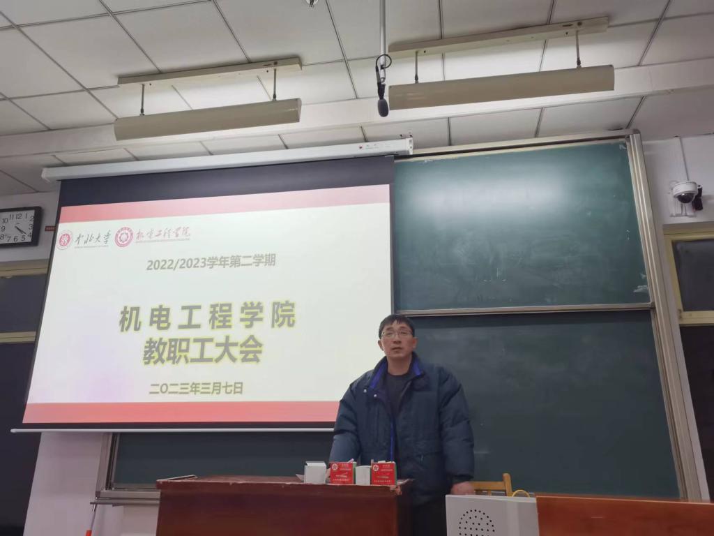春风送暖,万物更新。为凝聚全院教职工干事创业的磅礴力量,振奋精神开创年度工作新局面,2023年3月7日下午,学院在教学主楼11110H合堂召开了新学期工作部署会。大会由院党委副书记刘光主持,全院教职工参加。
