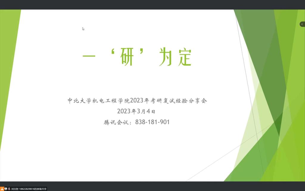 通过腾讯会议平台举办了以一“研”为定为主题的2023年考研复试经验分享会,每日大赛