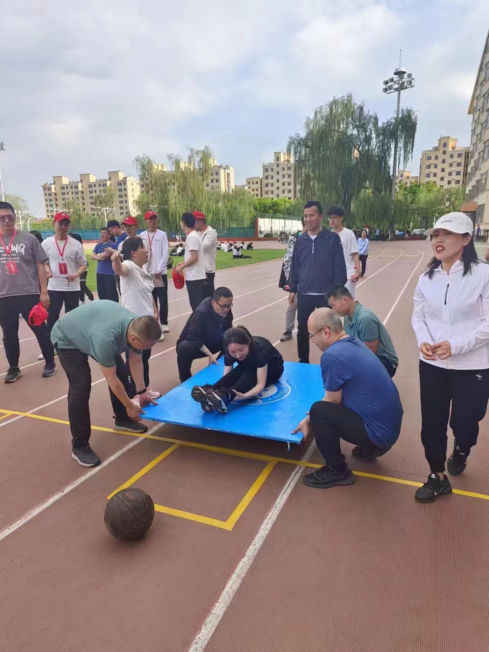 接着,各分支部门代表们依次进行了激烈的比拼。包括定点投篮、龟兔赛跑、同舟共济等多个趣味项目。
