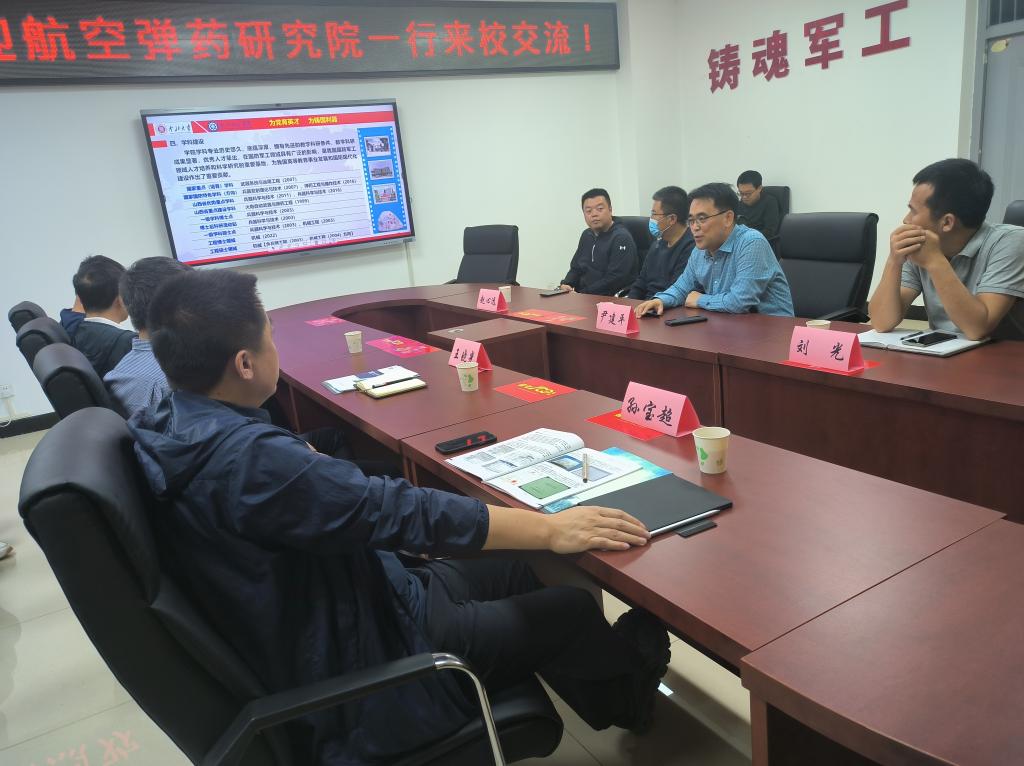 5月31号下午,中国兵器工业集团青年科技带头人、航空弹药研究院有限公司(以下简称“航弹院”)前沿技术部王晓光部长和人力资源部孙宝超部长来校交流座谈。座谈会在科学楼312会议室举行。每日大赛