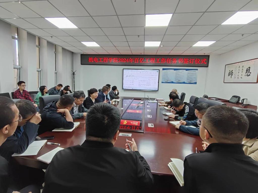 在313会议室召开了2024年“百亿工程”工作动员会暨工作任务书签订仪式。学院领导、各专业负责人和百亿工程项目负责人参加了会议。