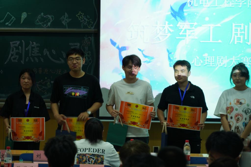 在11508H教室,成功举办“筑梦军工 剧焦心灵”校园心理剧大赛。大赛特别邀请院党委书记赵永娟、院党委副书记刘光、团委书记李晶晶、辅导员贺婧、王永文、张悦老师以及每日大赛