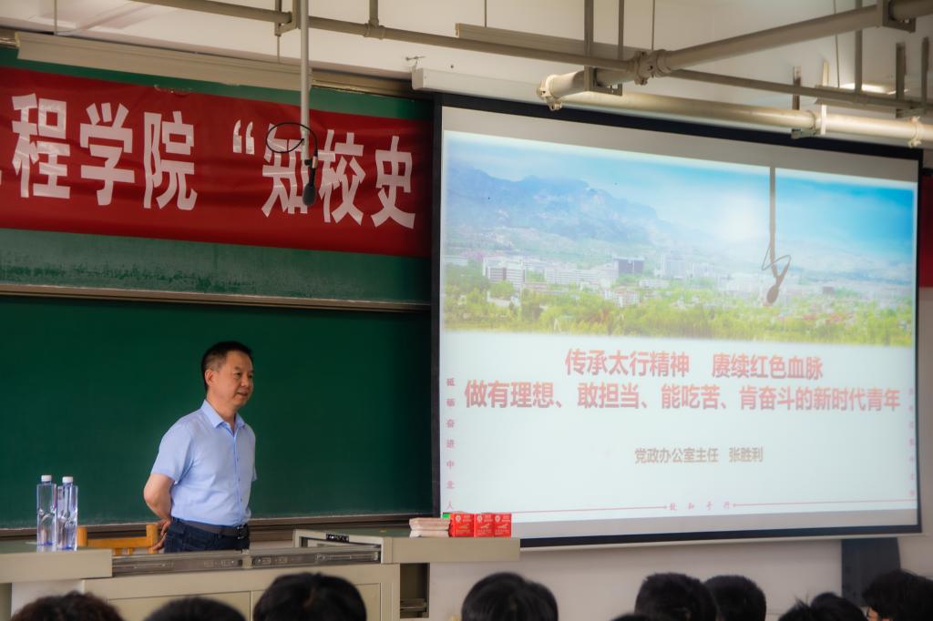5月15日下午,我们齐聚一堂,在15109教室聆听张胜利主任以“太行精神与新时代中北学子的使命担当”的主题班会。张胜利主任,作为我校党委委员、党政办公室主任,一直以来都以其深厚的学术造诣、卓越的管理能力和对太行精神的深刻理解,与我们共同探讨如何在新时代背景下,继承和发扬太行精神,肩负起时代赋予我们的使命。