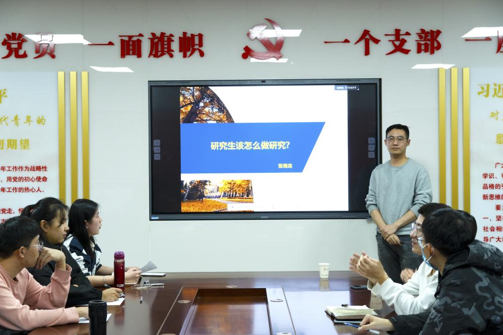 在科学楼A座党员之家举行了2025届保研学生科研入门与规划学术讲座。本次讲座邀请了张克斌副教授和张海龙副教授作为主讲嘉宾,院党委书记赵永娟、辅导员王永文老师以及保研的57名同学参加了讲座。