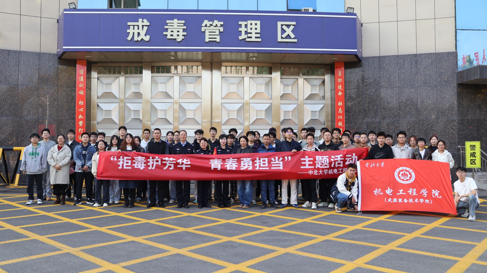 团委书记李晶晶带队,辅导员老师王永文、邢培岩携党员学生代表及学生骨干,赴山西省太原新店强制隔离戒毒所开展沉浸式禁毒警示教育。