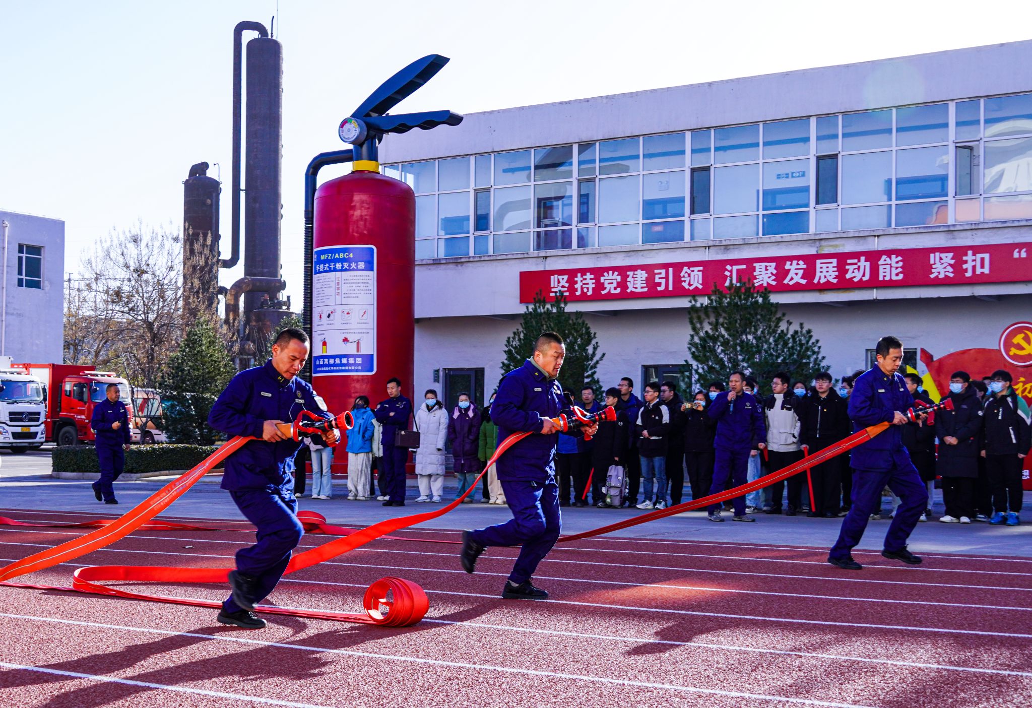 活动首站抵达汾阳市吕安危险化学品应急救援基地。在基地专业人员的引导与讲解下,师生们首先观摩了火场救援演示与无人灭火车灭火实操演示。逼真的场景、规范的流程,让大家对消防救援工作的专业性与危险性有了直观深刻的认识。随后,在室内培训环节,专业的消防救援知识讲解进一步丰富了师生们的安全理论储备。学生代表们还踊跃参与了灭火防护服穿戴体验及日常训练模拟,切身感受了消防员肩负的责任与艰辛。