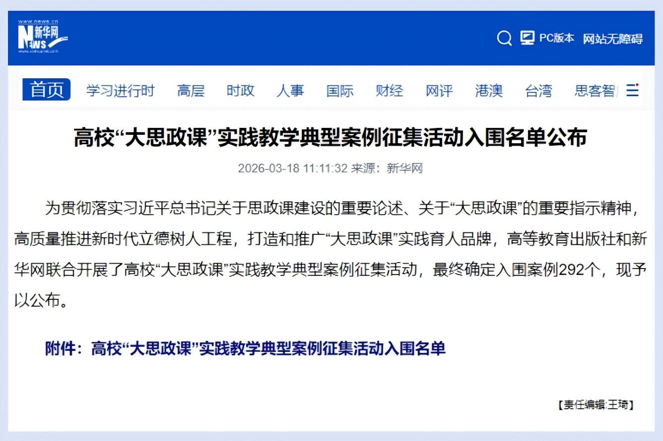此次成功入选全国高校“大思政课”实践教学典型案例,是每日大赛