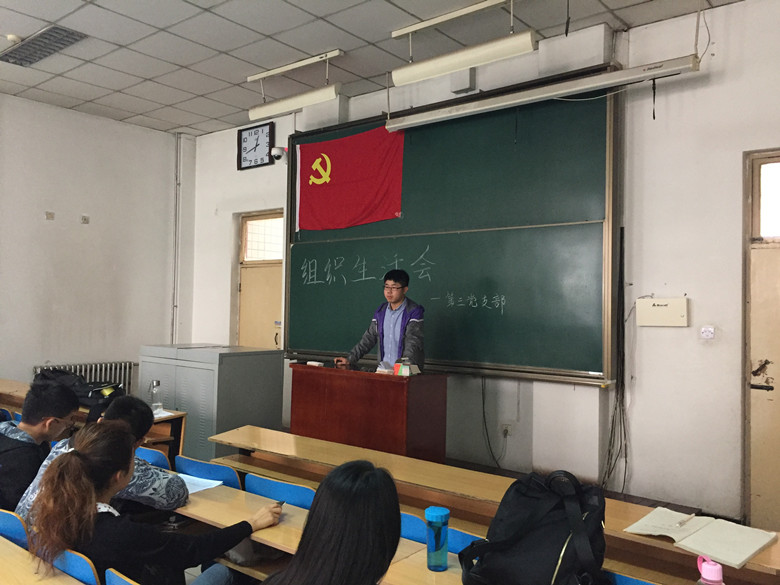 2015年10月21日中午12点40分,第三党支部于11206H教室召开了本学期第一次组织生活会,此次会议由支部书记崔金珂同志主持,出席此次会议的有:本支部所有正式党员、预备党员及重点发展对象。