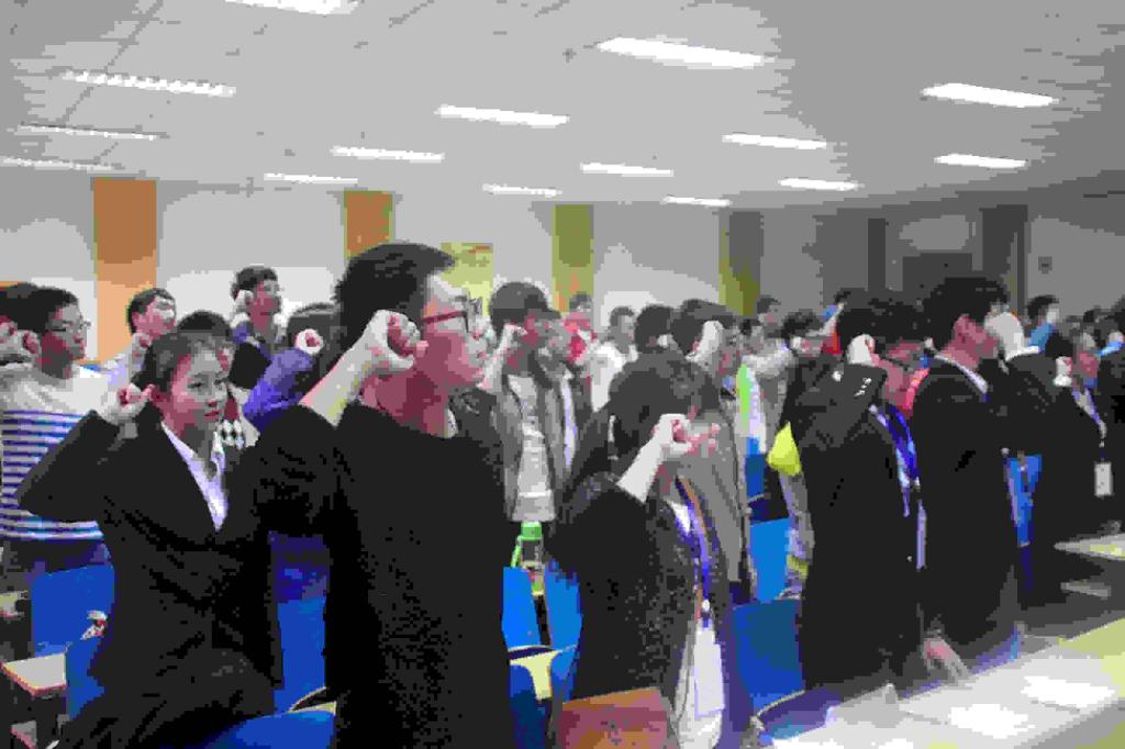 会议随后举行了隆重的聘书颁发的活动,参加此次会议的各位老师对上届主席团的各位成员,各部门的部长以及副部代表颁发了聘书。颁发结束后,由现任学生事务管理中心主任田博文学长带领所有在场学生进行宣誓,表示愿意全身心的投入到学生事务管理中心的工作中来,共同创造机电的美好未来。