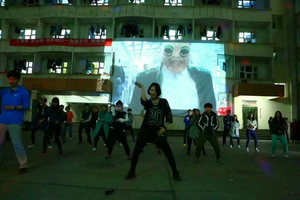 活动伊始,舞会现场十分热闹,随着思源艺社开场舞《江南style》开幕,吸引了各院的学生。大家都随着音乐舞动,沉浸其中。接着是其成员进行的现场教学,现场观众充分参与。并穿插游戏环节,由几名男生背星等人数的女生“闯关”,经过喝水、吃东西、踩气球环节回到起点,参与的同学都获得了相应的礼品。游戏结束后,回归本次活动的主题“轰趴趴蹦擦擦”,全体同学一起跳舞,在歌舞声中将整个舞会推向高潮。整个活动的最大亮点则是舞会全程现场直播,将舞会过程投影在墙上,使整个回字楼的同学都能从各个角度看到。