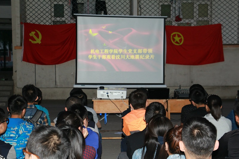首先,祁亚芳老师做了开场讲话,她说:汶川大地震已经过去八周年了,八年前的今天,我们的同胞遭受了巨大灾难,但是我们的人民,我们的国家在我们党的带领下渡过了那场劫难。作为新时期的青年学生党员、学生干部,我们应该铭记历史、总结经验、砥砺前行、开创未来;接着,所有在场人员起立默哀一分钟,沉痛悼念八年前的那场灾难和在灾难中去逝的同胞;然后,大家观看了纪录片《人民至上》,影片真实再现了八年前大地震发生时的场景:倒塌的楼房、深陷的道路、山体滑坡、泥石流、慌乱的人群、悲惨的叫喊......但是他们没有感到无助,没有感到绝望,因为温总理来了、胡主席来了、解放军来了、我们的党来了。第一时间抢救被困群众,第一时间抢通道路通信,第一时间运送生活物质,在灾难面前,我们的党永远把人民的生命财产放在第一位,始终坚持以人为本,生命至上,创造了世界上不可超越的救援奇迹,“为人民服务”不是一句口号,而是我们党始终坚持并践行的真理;最后,王宇鹏老师做了总结讲话,他说:看到同学们都这么认真地观看影片,我相信你们都被影片深深感动了,无论你们现在是党员、重点发展对象还是团员,你们都有一个共同的身份——中国青年,你们应该把这份感动内化为自己的行动,树立远大理想,为国家为人民奉献自己的一份光,一份热。