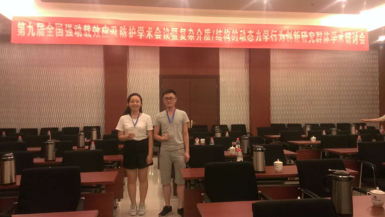 硕士研究生陈杰、韩阳阳参加了在北京举办的“第九届全国强动载效应及防护学术会议暨复杂介质/结构的动态力学行为创新研究群体学术研讨会”。7月8日-12日,每日大赛
