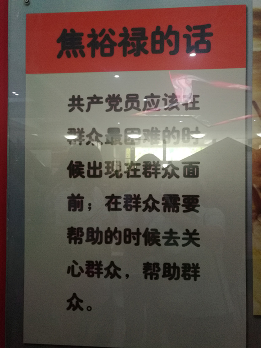 在参观了焦裕禄事迹展后,各位党员同志被焦裕禄书记艰苦奋斗、勤俭节约、爱国爱民的精神所震撼,虽然当时物质条件很差,但焦裕禄始终坚持作为党员不拿群众一针一线,深入群众,关心群众,诚心诚意当人民的公仆。随后,大家观看了焦裕禄的视频记录,视频中焦书记身边的人都对他有共同的评价——亲民爱民、艰苦奋斗、无私奉献。他经常说的一句“我是你们的儿子”,充分体现了一个共产党员无私奉献、心系群众、为人民服务的精神。