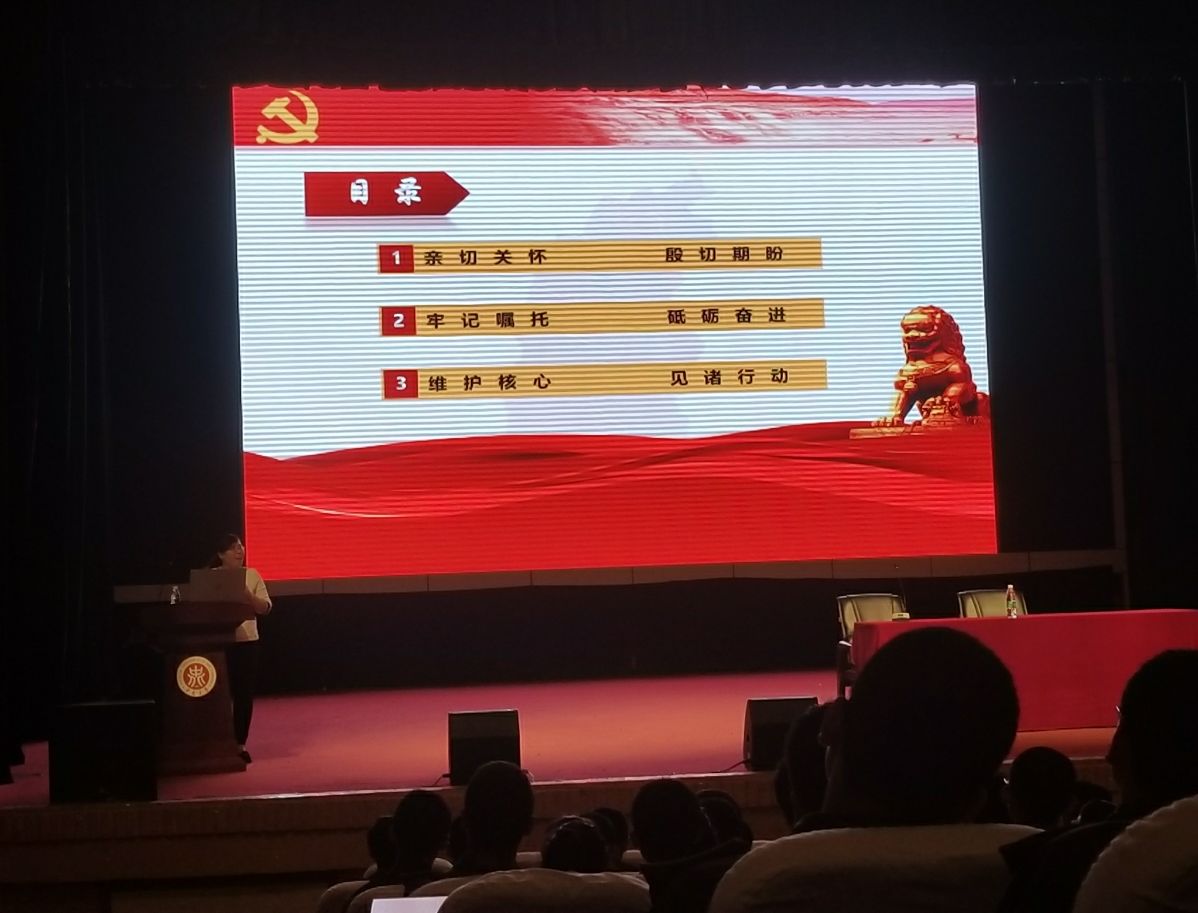 张丽花老师从“最美山西”宣传视频入手,以“深入领会精神 坚定理想信念”为题为2017级新生讲解了习近平总书记视察山西重要讲话精神。她从 “亲切关怀 殷切期盼”、“牢记嘱托 砥砺奋进”、“维护核心 见诸行动”三个方面对习近平总书记视察山西重要讲话精神做了深度解读,教育广大青年学子学习贯彻习近平总书记视察山西重要讲话精神,坚定理想信念。张老师表示,希望同学们将“人才有高下,知物由学”这句古训牢记于心,积极践行习近平总书记的嘱托,勤学、修德、明辨、笃实,在实现中国梦的伟大实践中创造自己的精彩人生,争做社会的栋梁。