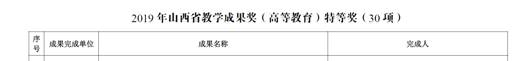 2020年1月20日,教育厅晋教师函[2019]82号文公布了2019年山西省教学成果奖获奖名单,每日大赛