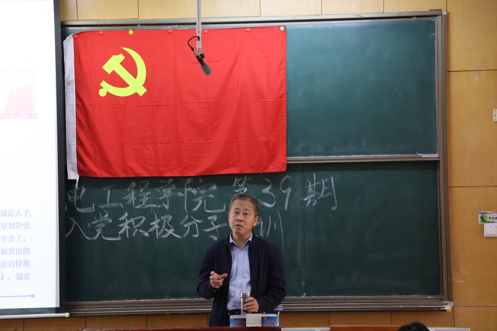 第六讲,电气与控制工程学院党委书记赵正杰讲述《守纪律讲规矩,做堪担民族复兴大任的新时代青年》。他向同学们讲述了守纪律讲规矩的重要性,从守什么纪律、讲什么规矩等方面阐述了作为一名党员应当遵守的各项原则,劝勉同学们在新征程中争当时代先锋。