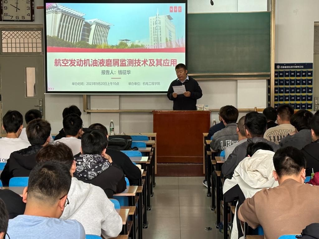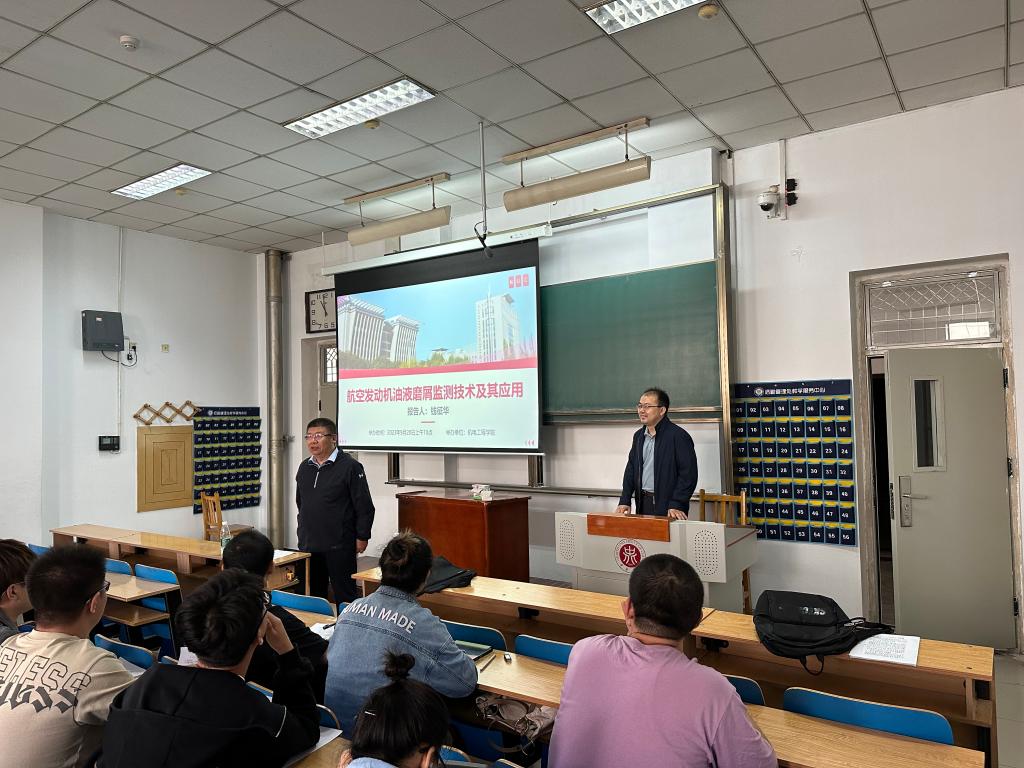研究生做了《航空发动机油液磨削监测技术及其应用》的学术报告,副院长赵河明教授主持。