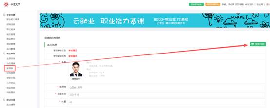 4、提交完成后,等待学院审核通过后,即可通过PC端(//zbjy.mrdsinfo.com/、进入后点击学生登录)进行打印。
