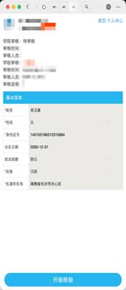 4、填写完成后,点击提交核验后,等待学院审核即可