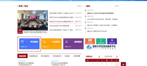 -学生入口,打开此页面,登陆(初始账号为学号,密码为身份证后六位,首次登录需要修改密码)。