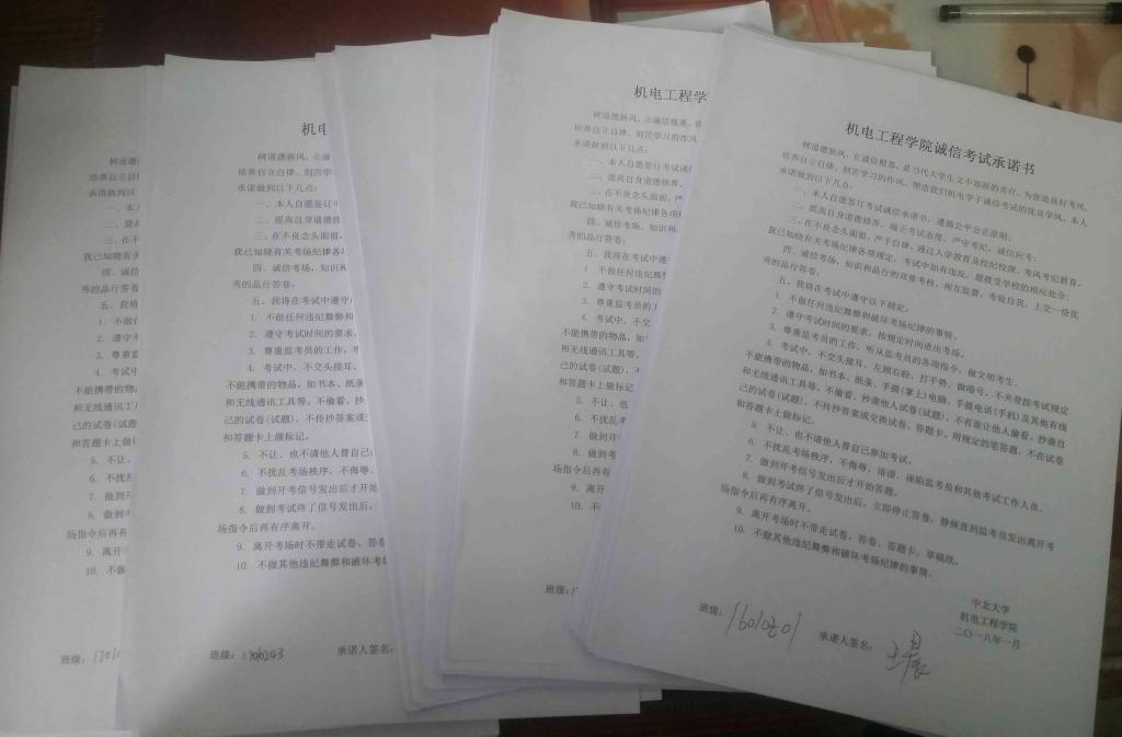 本科生考试违纪处分规定》,熟悉违规违纪处分结果,达到威慑作用。同时大一、大二全体学生签署《每日大赛