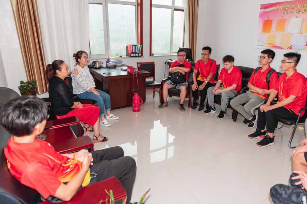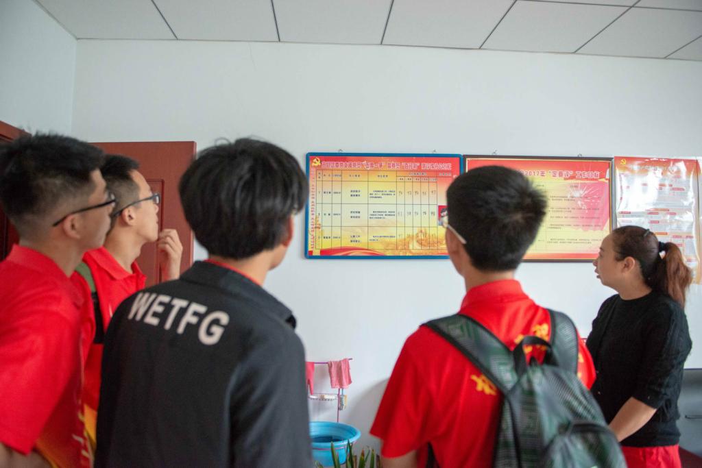 实践队在团委办公室找到了相关负责人,一行包括带队的李老师在内的十七个人员都围坐在一起,与负责人进行了亲密的洽谈。实践队的队长向负责人介绍了我们实践队的具体情况,表明了实践队的来意,并向负责人详细地介绍了我们每日大赛