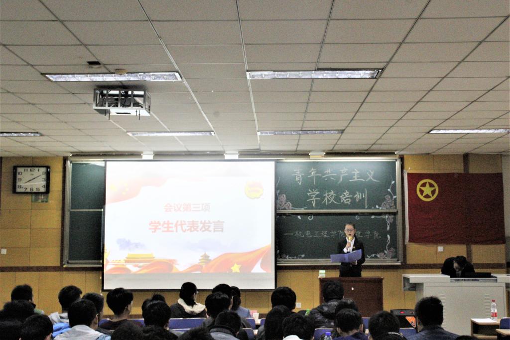 第一节课先是由理学院团委副书记李娜老师讲解了关于团的一系列知识,主要包括共青团的发展历史,我国共青团的团旗,团徽,团歌,我国共青团的组织原则等。以上讲解补充了同学们对团的基本知识的欠缺,树立了同学们要不断学习,不断探索的观念。第二节课我校校团委书记李俊华老师讲解了共青团的现状,共青团中存在的问题,以及习近平总书记对当代青年的嘱托“青年一代,有理想、有本领、有担当,国家就有未来,民族就有希望。”从李书记的讲解中,同学们更深的理解到作为新时代青年,无论有多大困难,都必须迎难而上,完成历史交给我们的使命与任务。紧接着李书记针对当今学生干部存在的问题,讲明了我国,我校共青团改革的方案。从这份方案中,我们了解到,国家改革的决心之大,之坚定。
