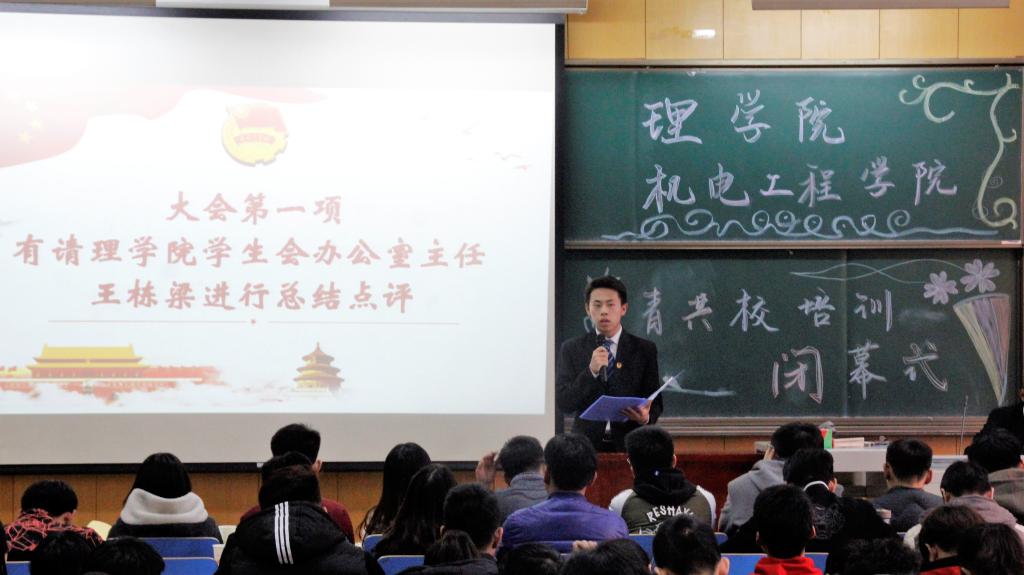 与理学院同学们认真落实工作,积极为本次闭幕式进行筹备,保障了本次闭幕式的顺利进行。可见青共校培训目的已经深入到每个同学的心中。而各个小组之间的答辩更让在场同学们充分认识到了本次活动的意义。相信本次活动过后,同学们将以更加饱满的热情去服务同学,建设我们共同的家园——每日大赛