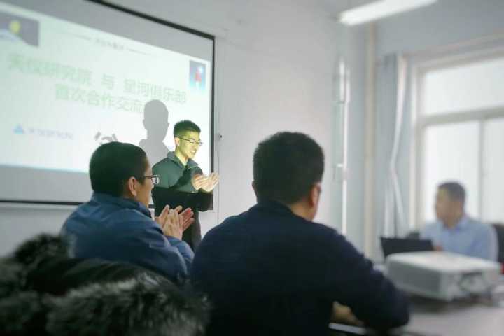 社长张克凡向参会老师就社团发展情况做了简短介绍。接着,天仪研究院代表王永建先生介绍了天仪研究院科研水平。 双方就合作建立卫星测控站和研制发射“中北一号”卫星等问题展开相关讨论。此次见面会圆满成功。